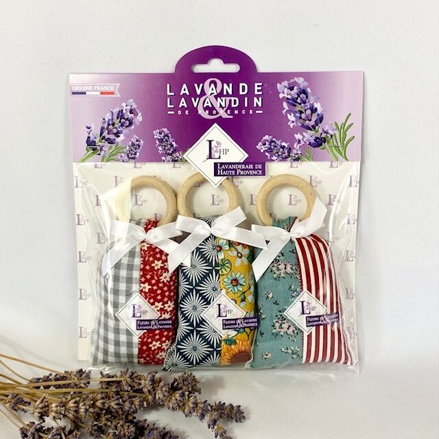 南フランス プロヴァンスより直接仕入れたラベンダーの香り袋に壁に掛けやすい様にリングが付いている、お得な3個セットです。